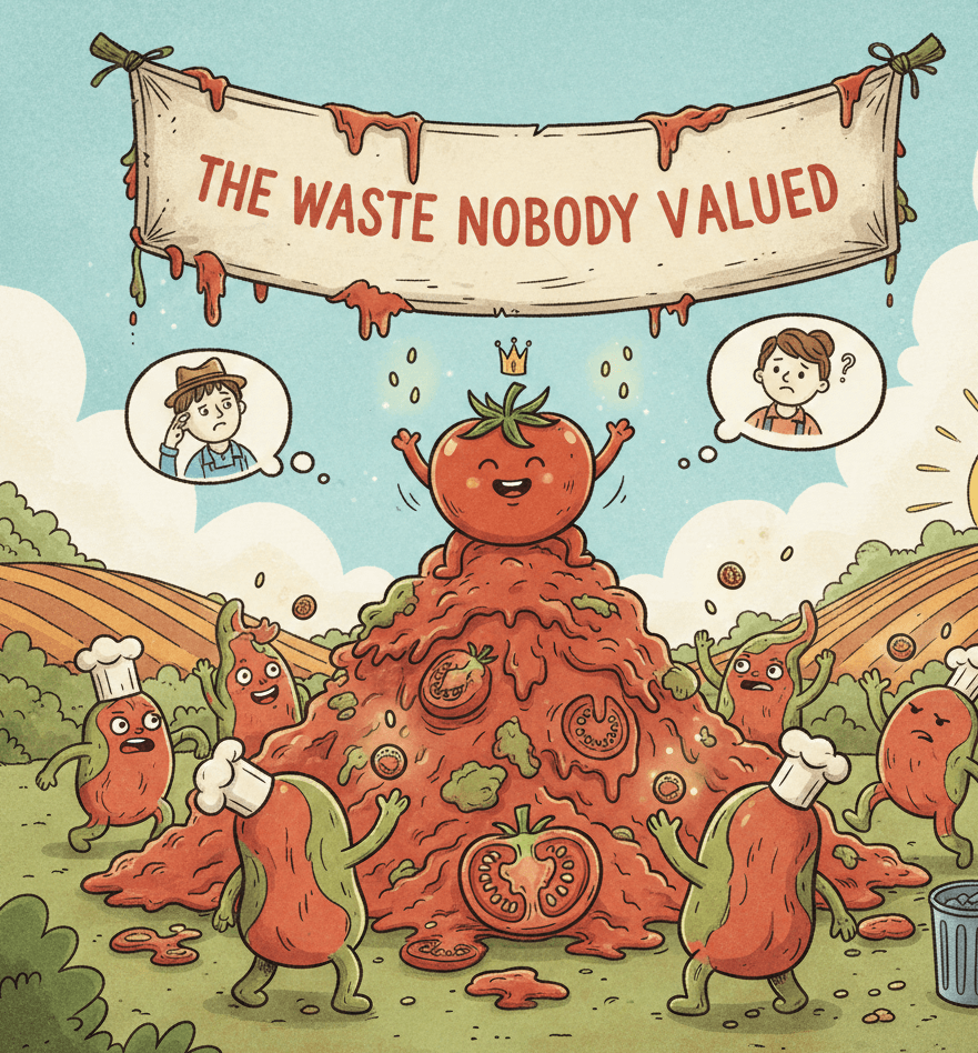 Every year, the world produces over 180 million tonnes of tomatoes, making them one of the most cultivated food crops on the planet. From ketchup and sauces to canned foods and ready-to-eat meals, tomatoes are everywhere. But behind this abundance lies an uncomfortable truth: 30–40% of processed tomatoes become waste—skins, seeds, and pulp discarded after juice and paste extraction.