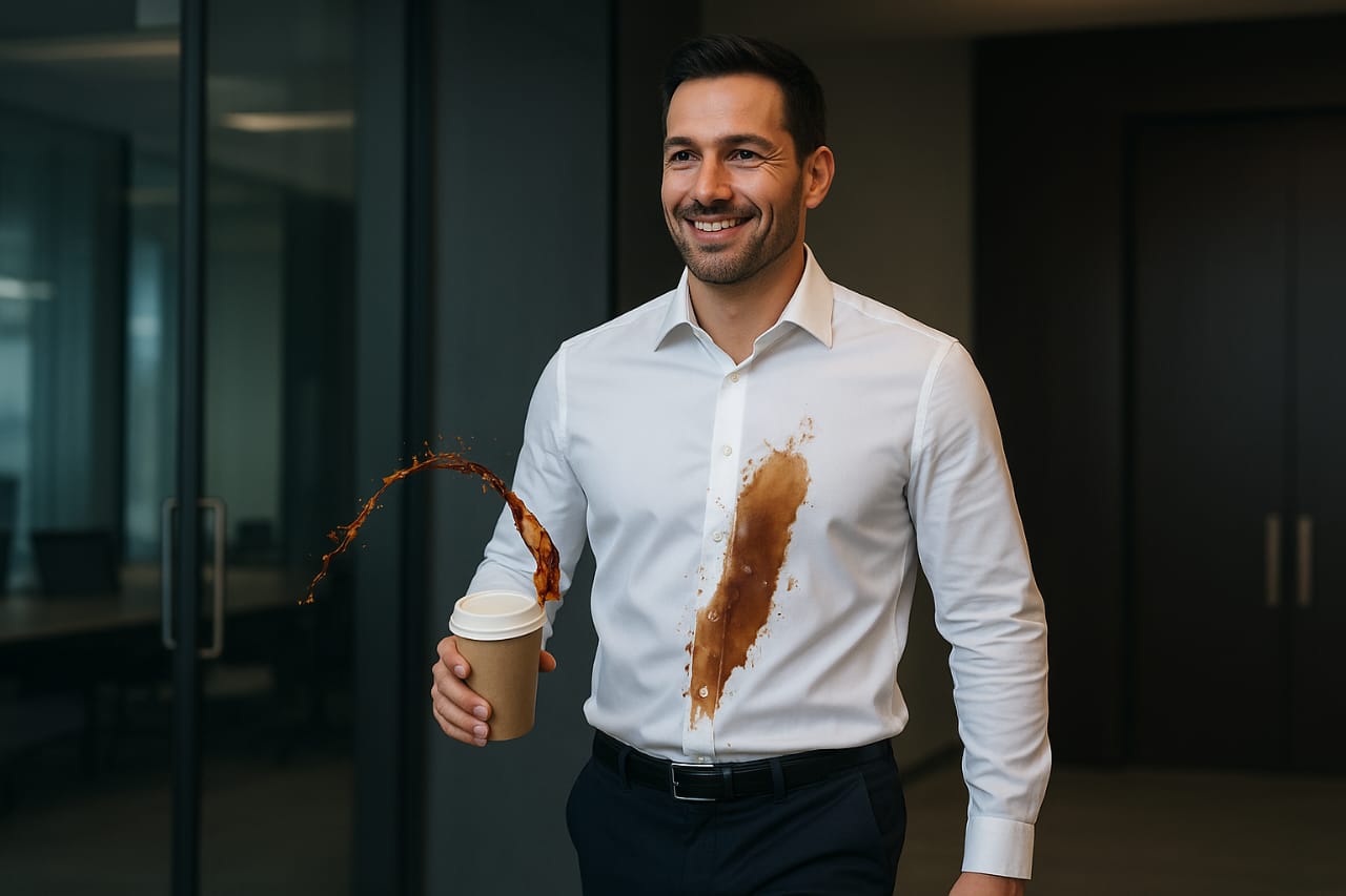 The true magic of this product unfolded under the bright lights of Shark Tank. The founders bravely poured red wine on themselves. Gasps echoed in the room as the liquid rolled right off. Then came coffee. Then ketchup. Every time, the shirt emerged spotless.