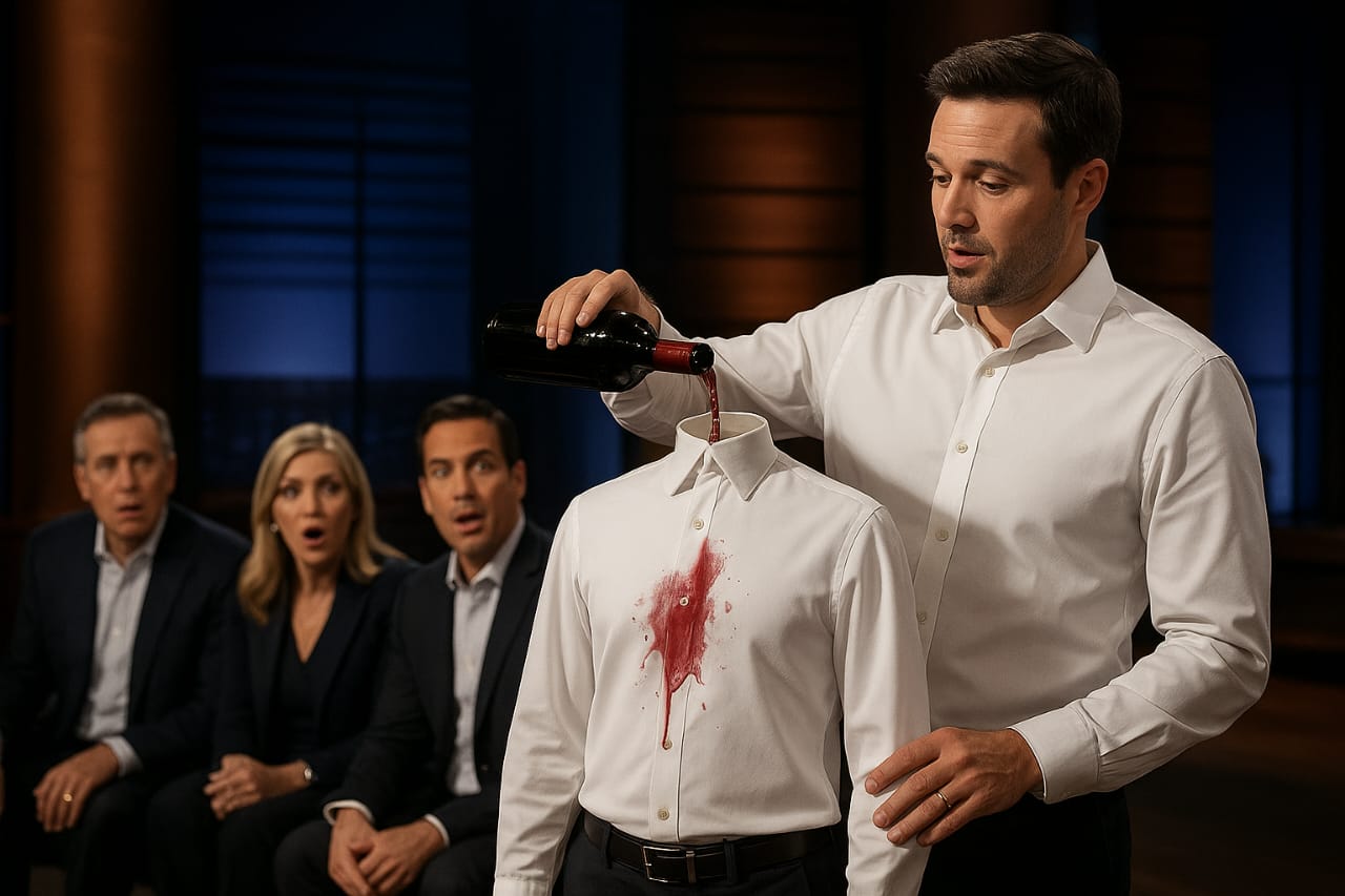 That’s exactly what viewers witnessed on Shark Tank. In a jaw-dropping pitch, the founders demonstrated their Waterproof & Stain-Free Shirt’s power by pouring wine, ketchup, and coffee directly on it. To everyone’s surprise, not a single stain stuck. The Sharks were stunned, the audience was hooked, and the fashion world took notice.